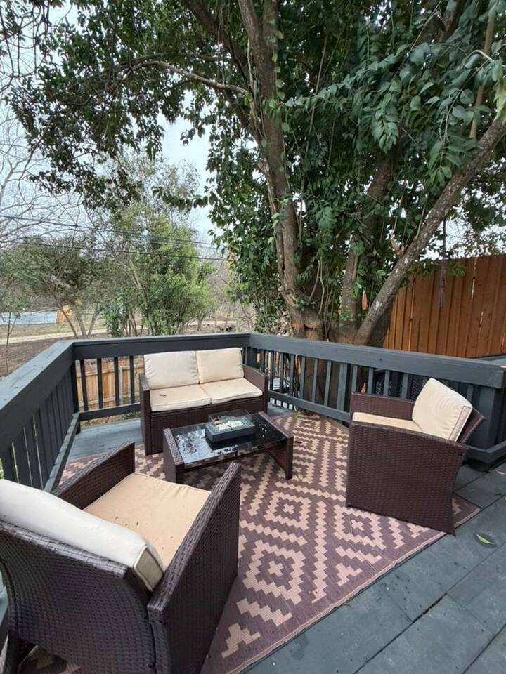 This newly remodeled and freshly painted home has been fully redecorated to create a comfortable, stylish, and welcoming space for your stay. Every detail was thoughtfully updated to make you feel right at home. The home features two spacious bedrooms and two full bathrooms upstairs, plus a convenient half bathroom downstairs. With modern finishes, cozy furnishings, and all the essentials you need, this space is perfect for relaxing after a day of exploring or working in Austin. Whether you’re visiting for business or leisure, you’ll enjoy a clean, comfortable, and well-equipped home designed for a great stay.