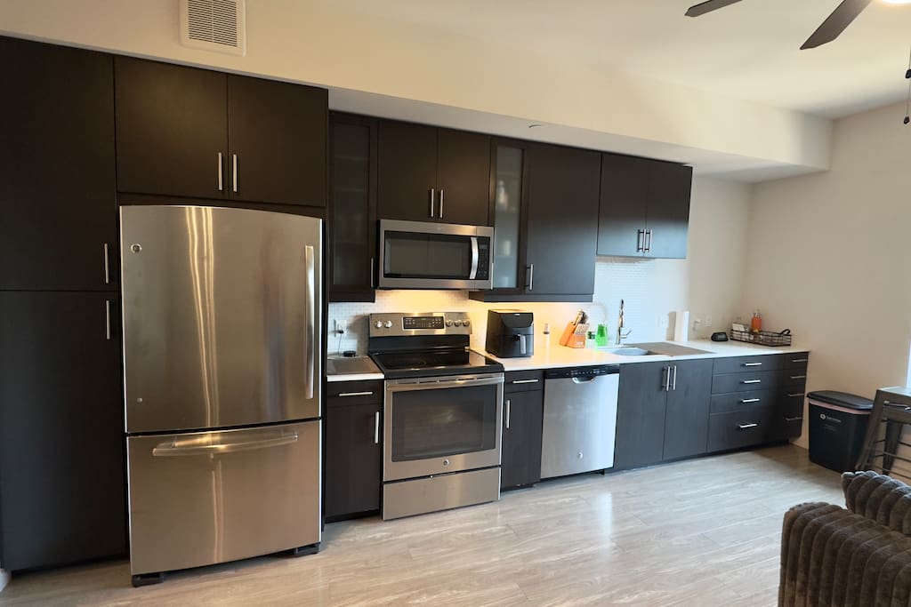 This fully equipped studio has everything you need. A comfortable king size bed, couch, smart TV, kitchenette, and workspace. The building offers luxury amenities like a rooftop-style pool, fitness center, and secure entry. Experience the best of downtown living in a stylish, convenient, and walkable location.