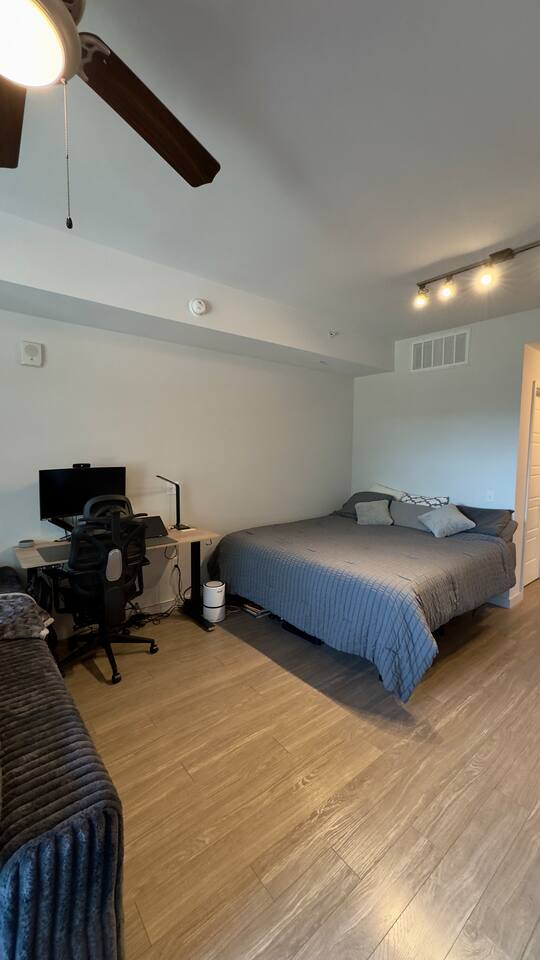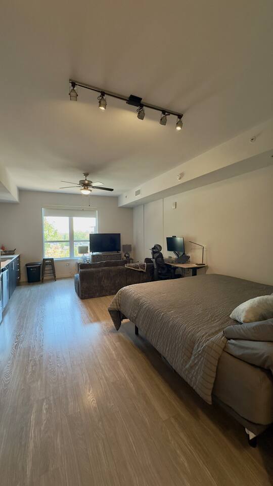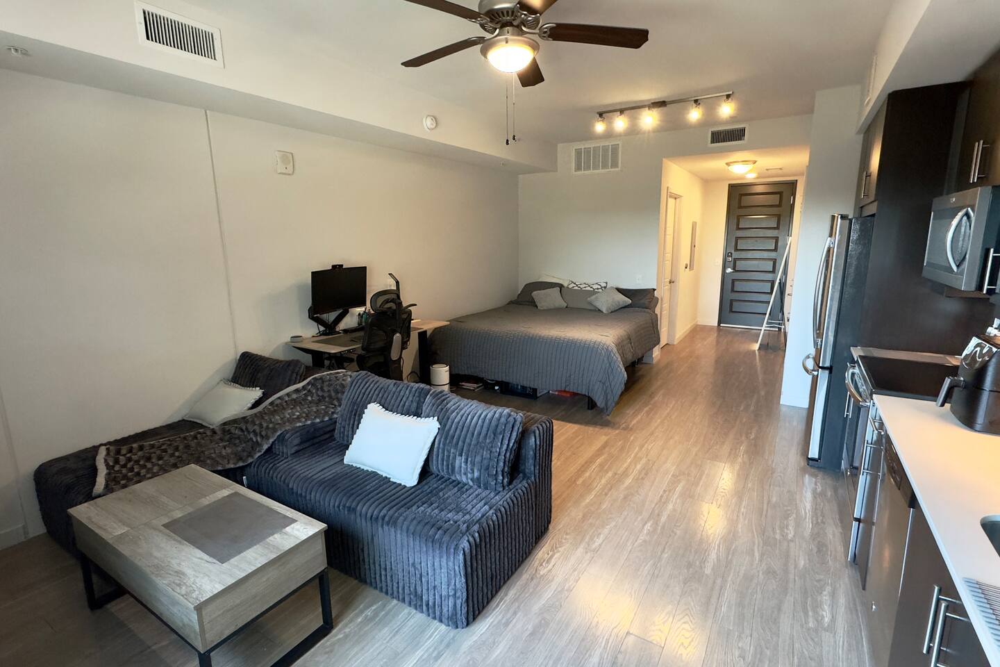This fully equipped studio has everything you need. A comfortable king size bed, couch, smart TV, kitchenette, and workspace. The building offers luxury amenities like a rooftop-style pool, fitness center, and secure entry. Experience the best of downtown living in a stylish, convenient, and walkable location.