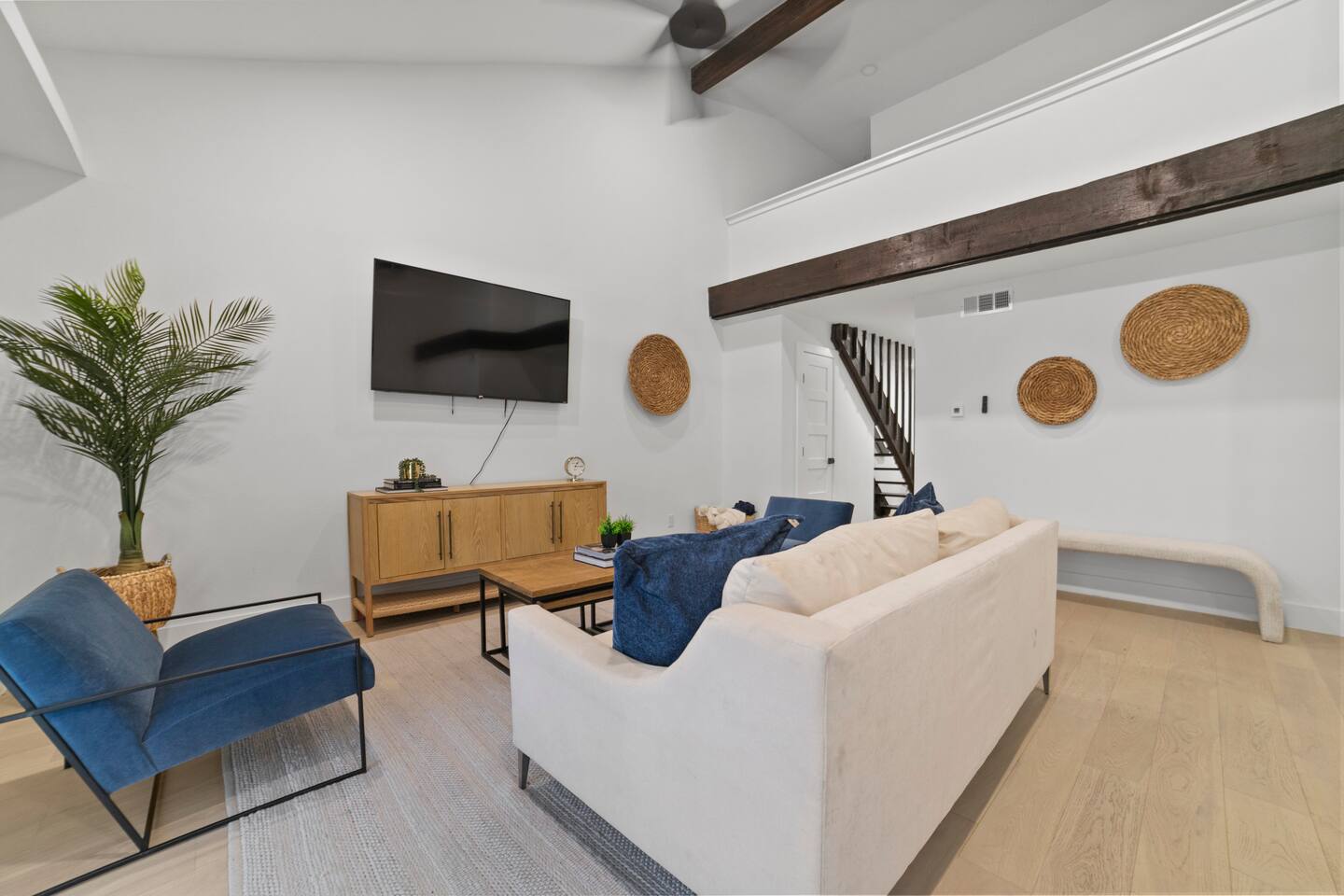 This 3BR, 2BA home boasts an open floor plan and high ceilings in the living area, allowing abundant natural light that accentuates comfortable furniture and adorable decor.